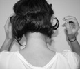 3.Bündeln Sie Ihr Haar mit der Hand zu einem Pferdeschwanz.