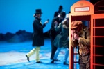 Ein erfrischendes Stück, mit genialem Bühnenbild und farbenprächtigen Kostümen. Das Orchester spielt in einer Blase sichtbar gemacht im Hintergrund der Bühne. Sehenswürdigkeiten werden mit Erläuterungen, dass sie damals noch gar nicht bestanden haben, zum besseren Wiedererkennungswert auf die Bühne gebracht. Der Indianerhäuptling (Daniel Jesch) imponiert nicht nur mit seiner tiefen Stimme, sondern auch mit seinem sehenswerten Six-pack. Mit viel Komik werden die einzelnen Szenen gespielt, der etwas tollpatschige Detektiv Fix (André Meyer) ist der Liebling der Kinder. Die Schauspieler reagieren auf Zurufe der Kinder, und aus dem Publikumsbereich kommen Zeitungsjungen (dargestellt von Frauen (Jan Horst und Sophie-Christine Behnke), und auf die Sensationslust der Zeitungen anspielend), aber auch Cowboys, die das Publikum mitten ins Geschehen bringen.