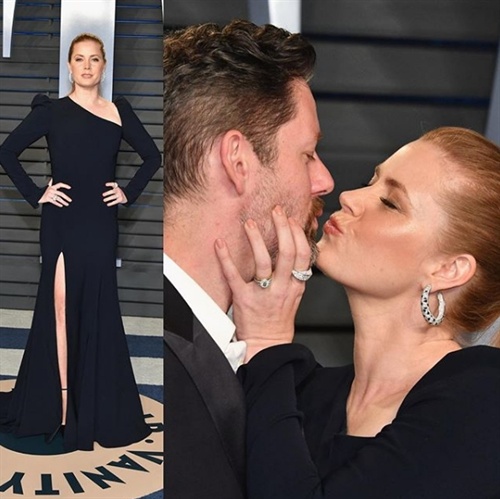 Amy Adams in Christian Siriano playfully kisses husband Darren Le Gallo