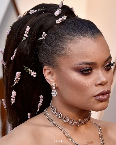 Andra Day in pink Nina Ricci after an an off-the-shoulder Zac Posen look 4