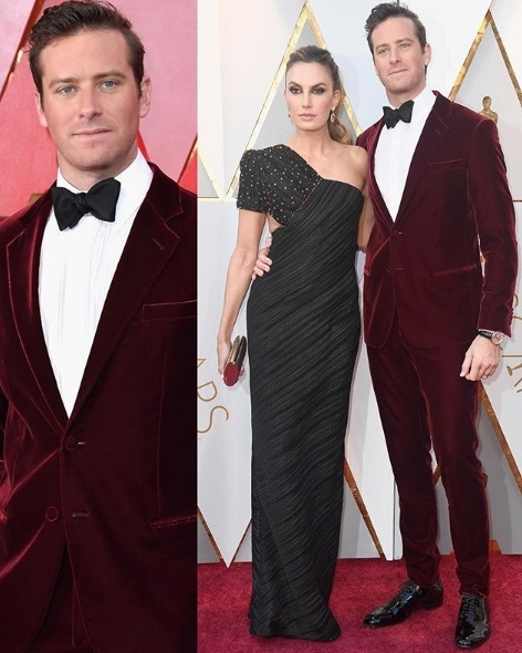 Armie Hammer with wife Elizabeth Chambers - both in Armani