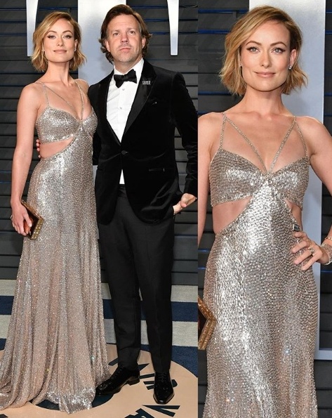 Olivia Wilde in Roberto Cavalli alongside Jason Sudeikis in Zegna