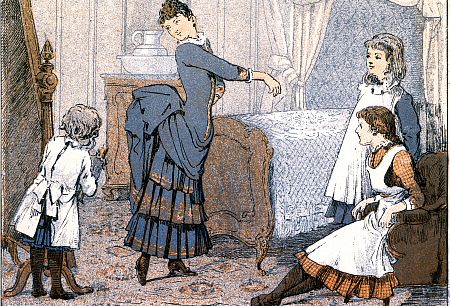 Das Bild zeigt einen Teenager (zu den damaligen Zeiten gab es im Dänischen den Begriff "Teenager" nicht. Stattdessen wird der Begriff "konfirmand" eingesetzt, das so viel wie ein Mann/eine Frau, die schon ein Erwachsener ist, bedeutet), eine junge Frau, die soeben ihr erstes Erwachsenenoutfit erhalten hat. Sie zeigt dieses mit Stolz ihren Schwestern.