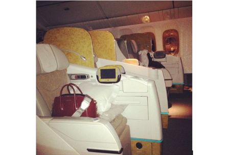 Stolz zeigt sie uns auf Instagram, dass ihre Givenchy Tasche bei einem Flug mit den Emirates Airlines einen Sitz für sich alleine hat und in der Business Class reist.