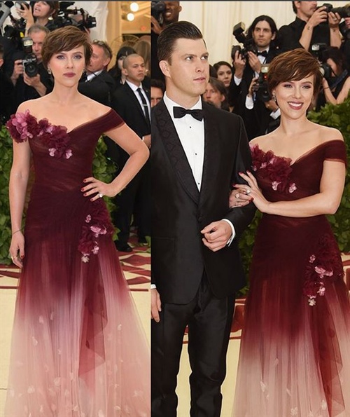 Scarlett Johansson in Marchesa mit Colin Jost 1